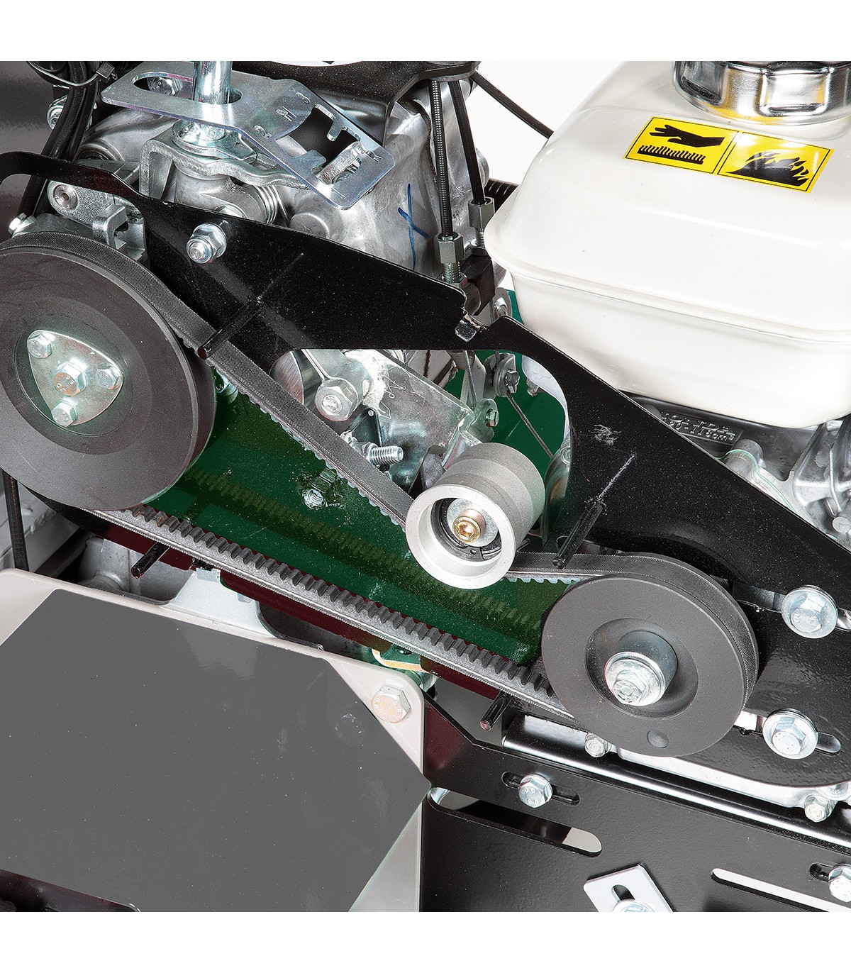 a cinghia, con disinnesto automatico al rilascio della leva di comando